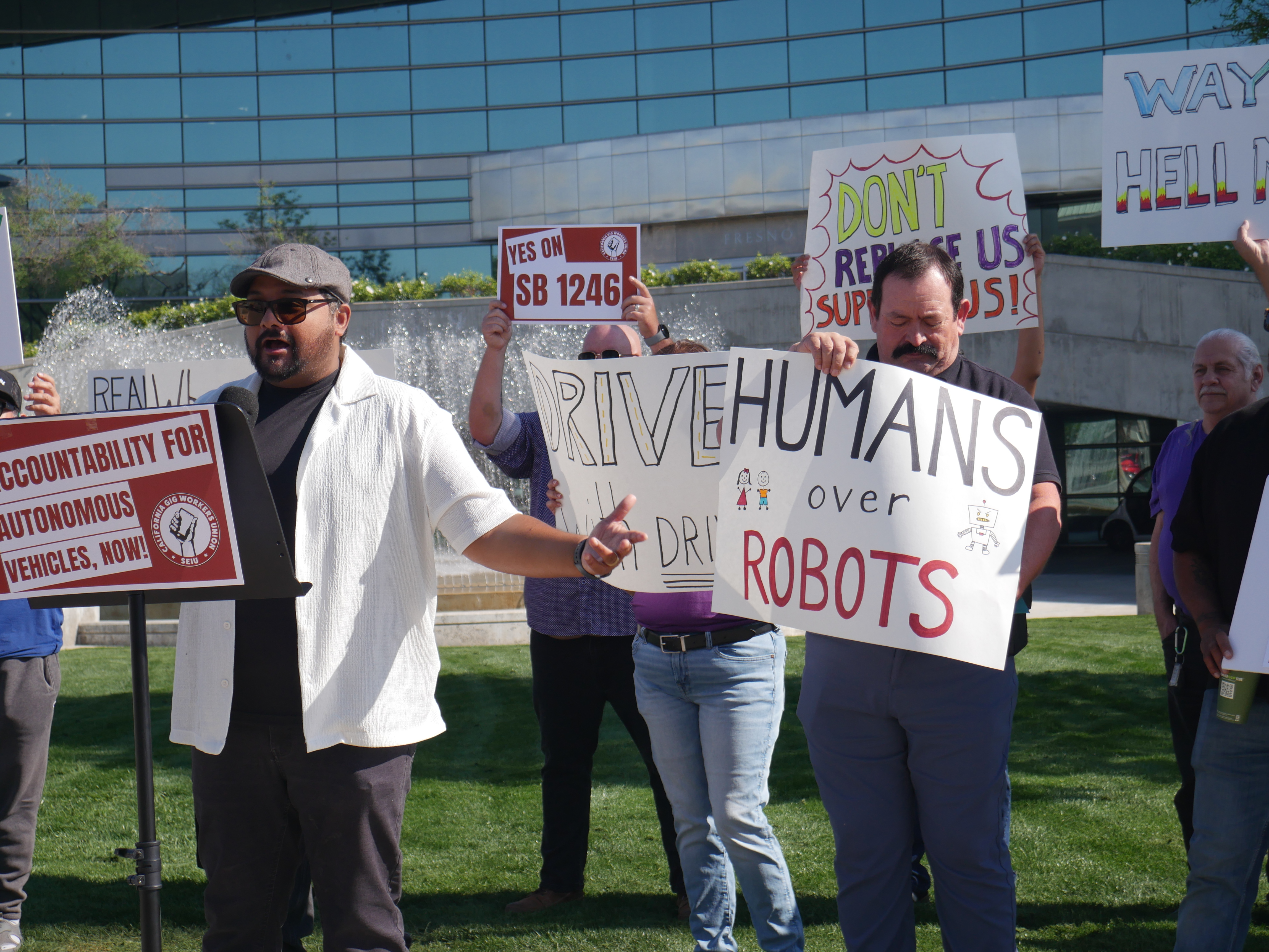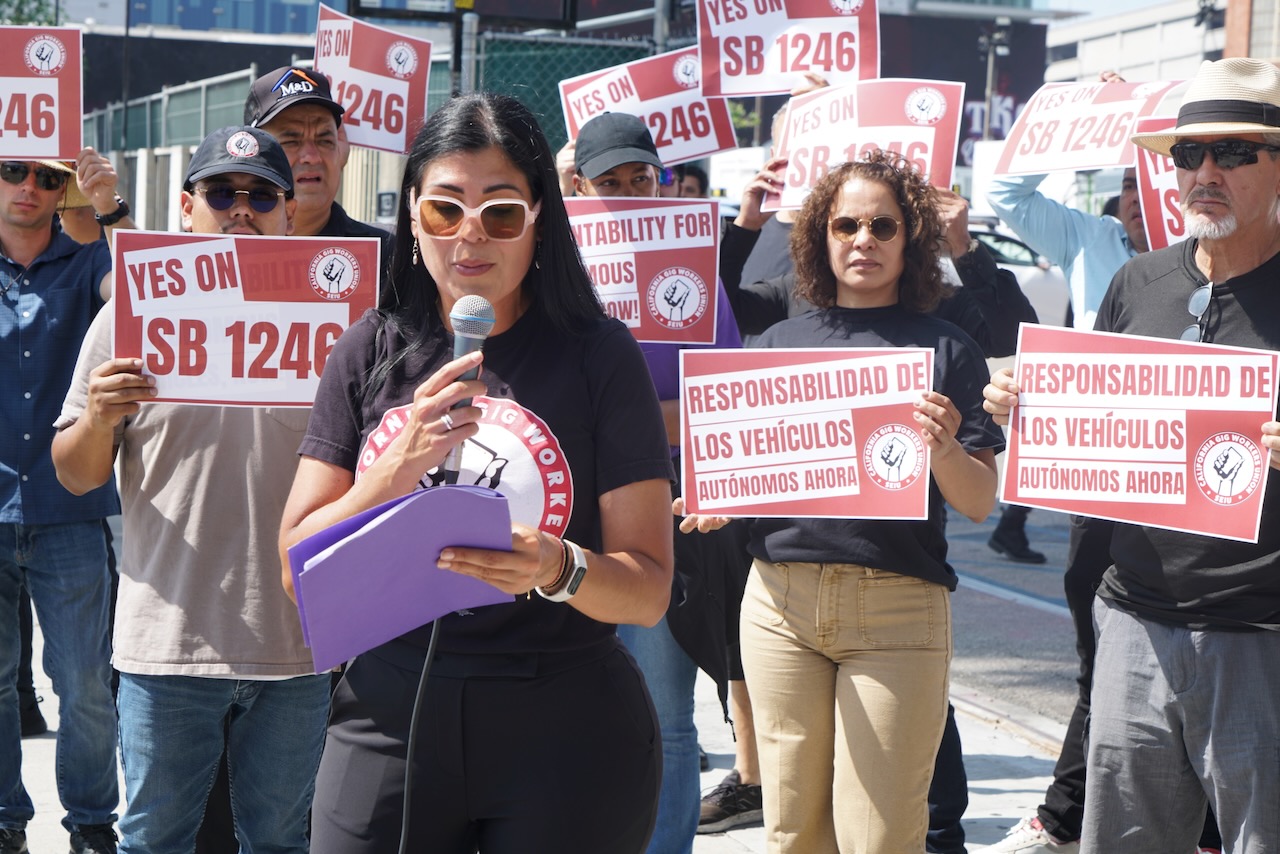 On March 25, gig drivers united in the California Gig Workers Union joined community allies in rallies across the state to voice strong support for SB 1246, a new bill that would bring fairness, accountability, and safety to the growing presence of autonomous vehicles on California streets.