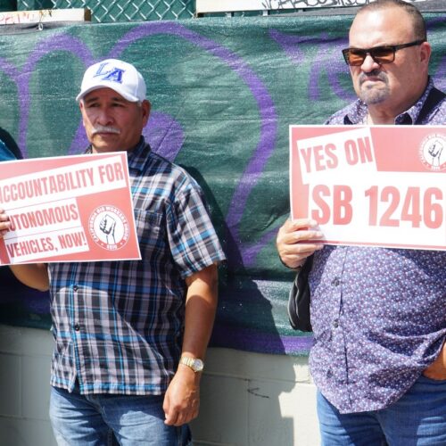 Drivers spend hours on the road and safety is paramount as we do our jobs. CGWU drivers in San Diego, Los Angeles, Fresno, San Jose and San Francisco rallied in support of SB 1246, because drivers must follow the rules of the road and are held accountable if we don’t. The same must be true for autonomous vehicles sharing our streets!